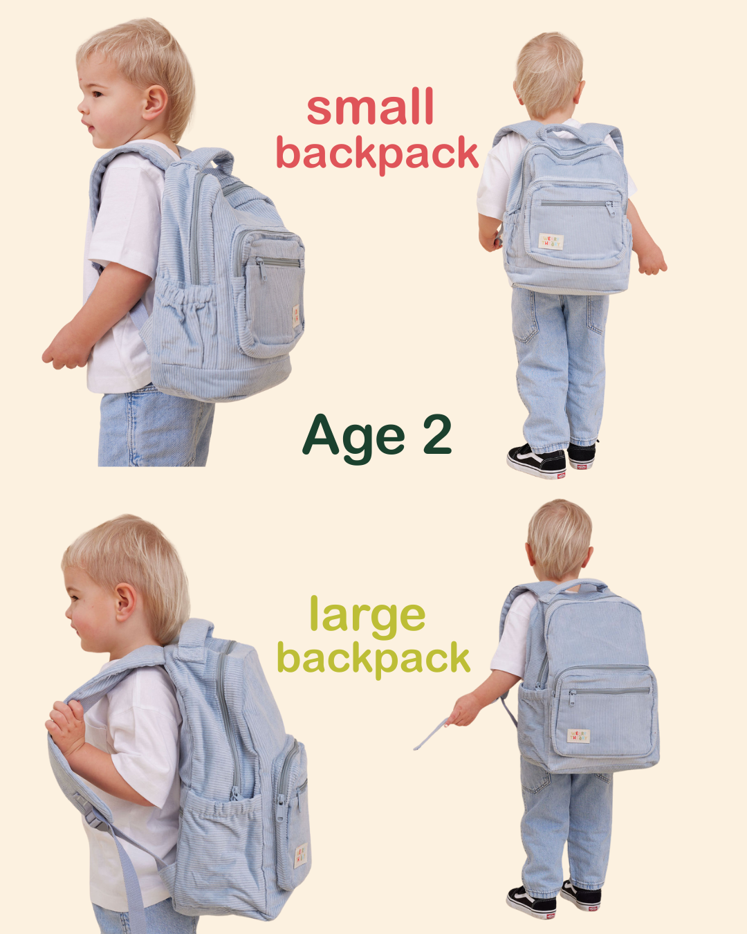 When it comes to choosing between our small and large backpacks, consider what fits best for your little one’s activities.